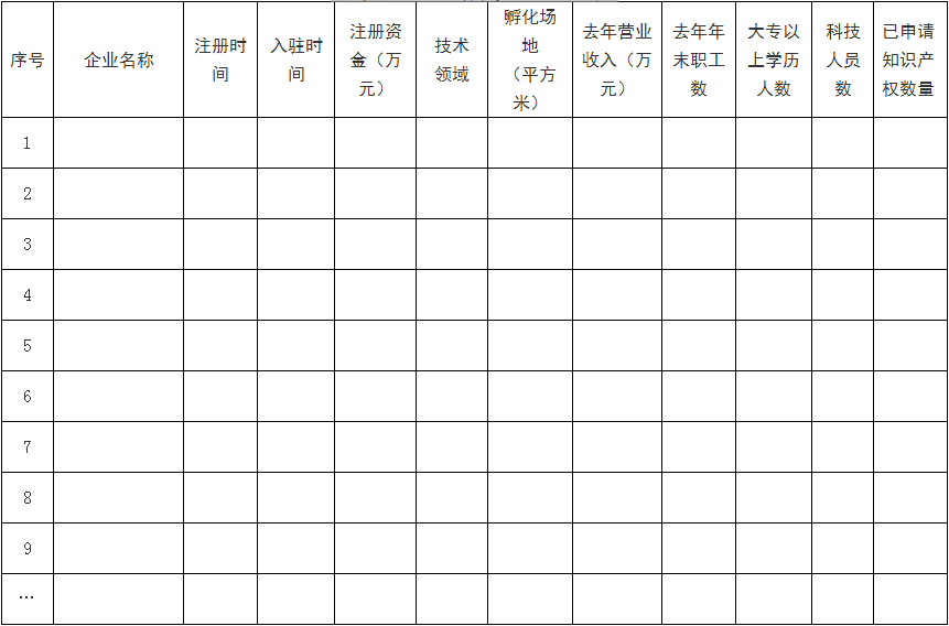 (六)在孵企業(yè)情況(在孵企業(yè)情況匯總表、在孵企業(yè)與孵化器簽署的孵化服務協(xié)議或入駐協(xié)議);