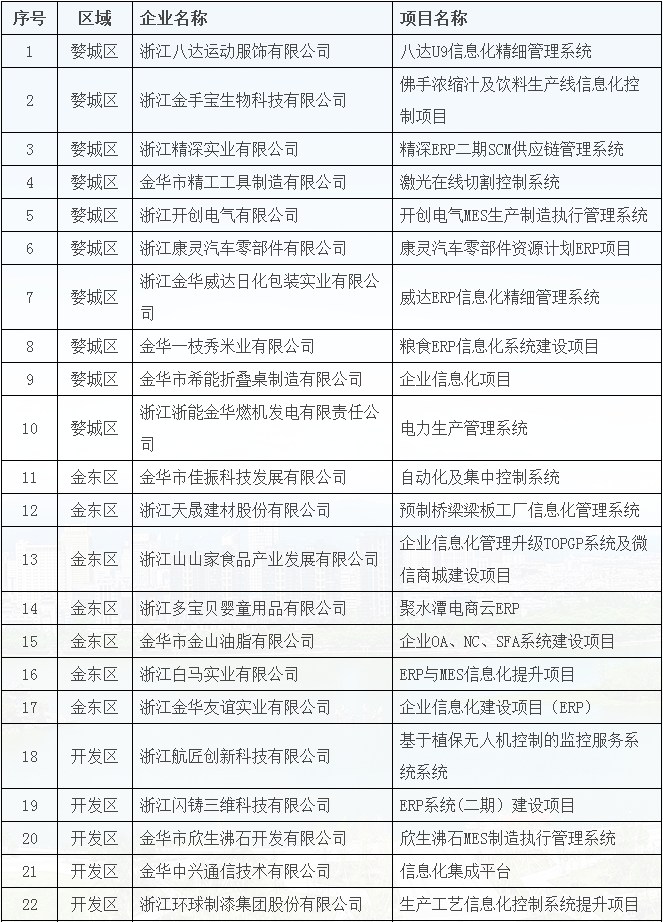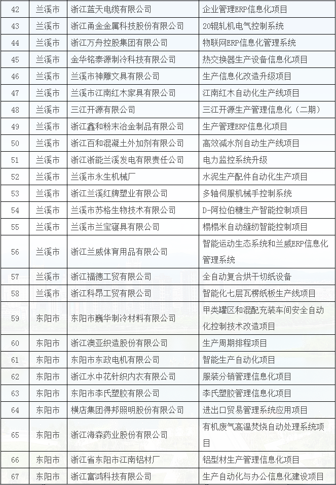 2018年金華市兩化融合重點(diǎn)項(xiàng)目名單