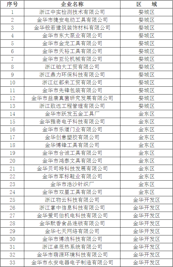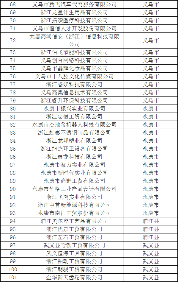 2018年第二批金華市高新技術企業(yè)擬認定名單